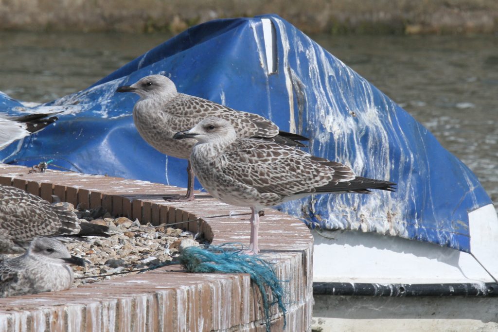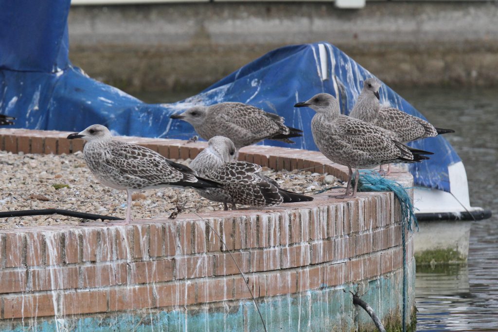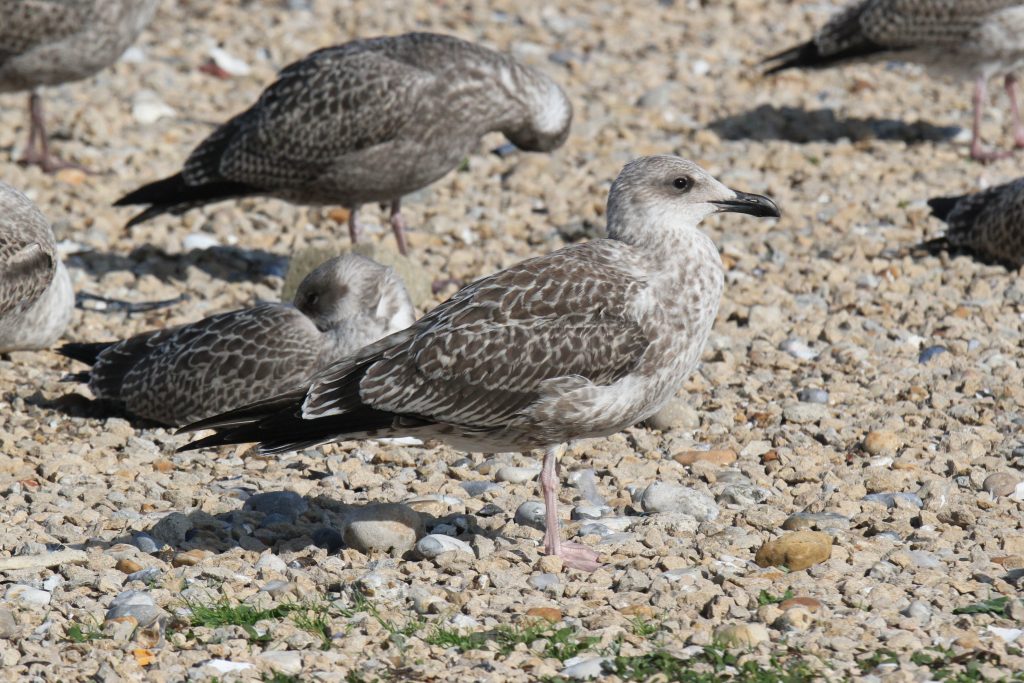 Juvenile YLG (far left) with juvenile Herring Gulls.