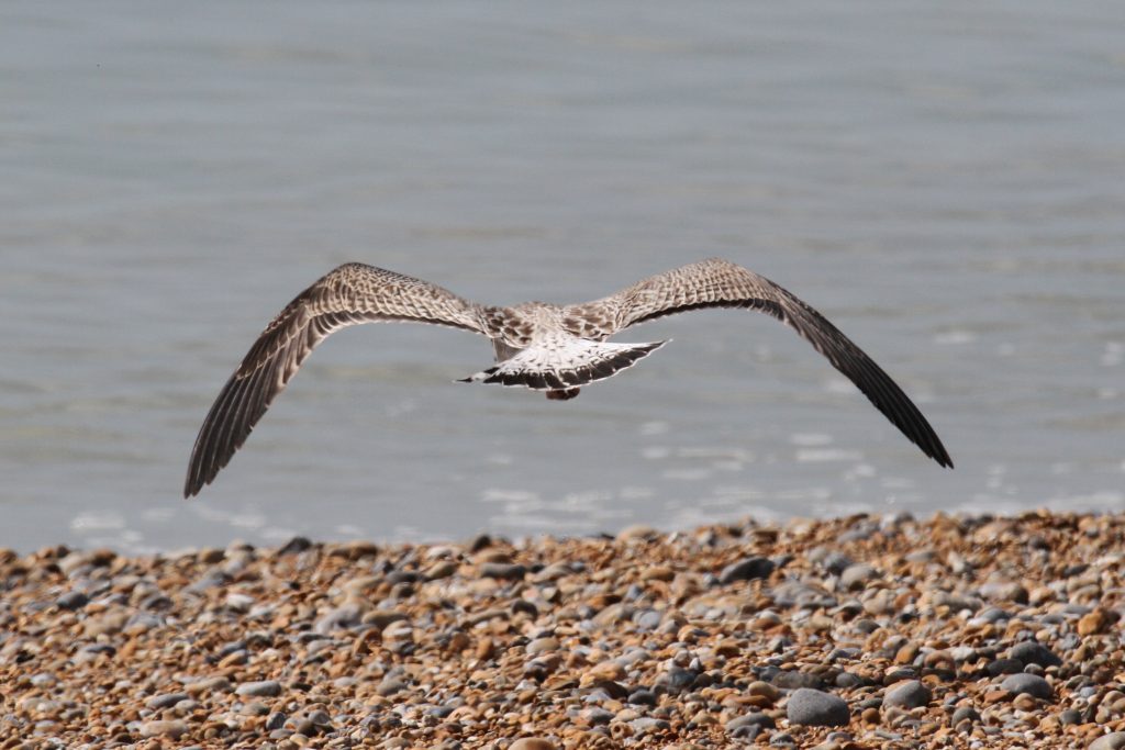 After the influx of Yellow-legged Gull (YLG) on the 11th July there was a steady trickle of juveniles through the seafront over the rest of the month, with birds present on all four of my subsequent visits. My guess is that the birds on the 11th had taken advantage of the southerly airflow to make a direct sea crossing from the coast of France — they all seemed tired and were reluctant to fly despite the frequent sources of disturbance along the beach.