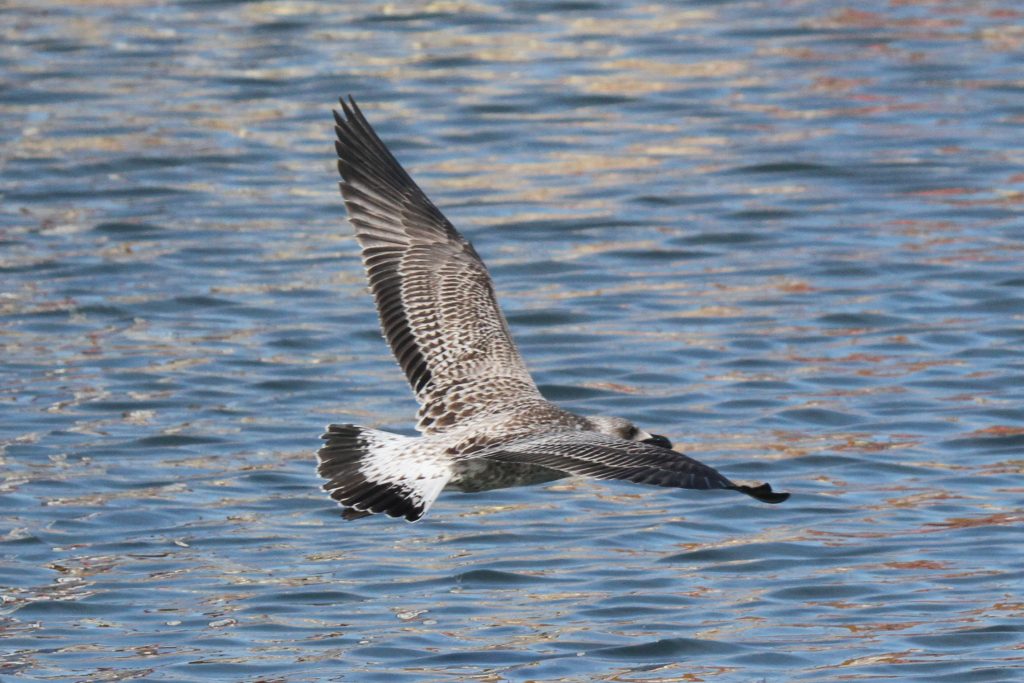 While the tertial markings, bill structure, primary window and moulted scapulars all feel great for YLG this bird had a thick black tail band and dusky legs. I’m increasingly realising that leg colour (particularly dark shins) is not a very useful feature for separating juvenile YLG and Lesser Black-backed Gull.