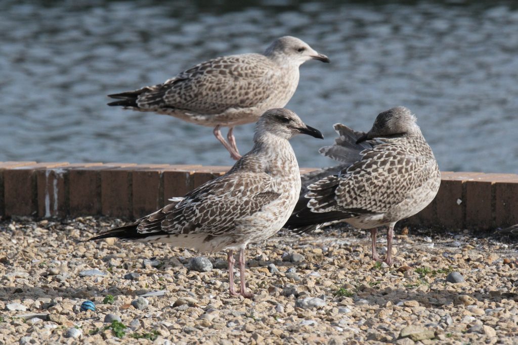 Juvenile YLG (front left) with two juvenile Herring Gulls.
