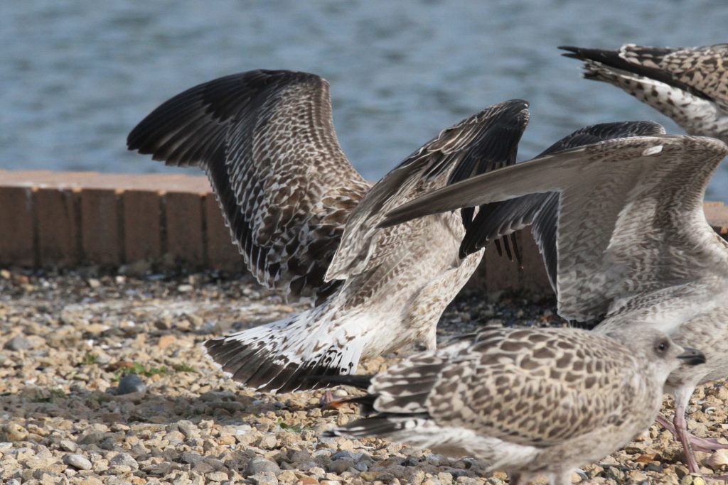 In contrast, the birds seen later in the month seemed be enjoying a more leisurely stop off. Individuals were observed all along the seafront but the best place seemed to be the boating lake (which was closed to boaters for the whole month). Here they would land to bathe and preen, briefly joining the local juvenile Herring Gulls, after which they would move off in a westerly direction along the seafront. In this post I’ve gathered together photos of all the individuals observed.