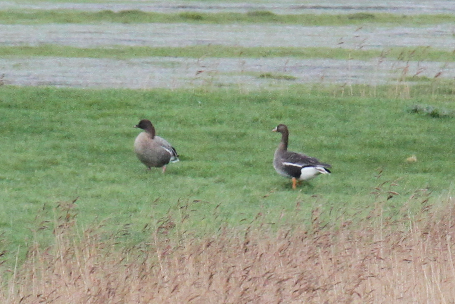 A single Eurasian Greater White-fronted Goose and Pink-footed Goose continued to hang on at Pett Level until at least the 3rd.