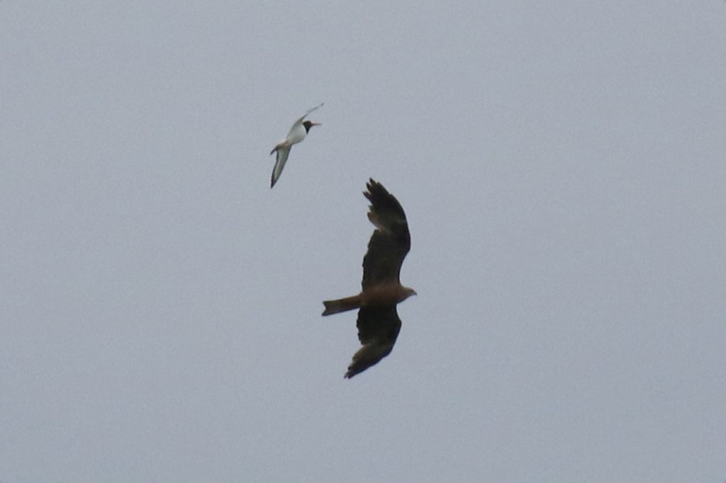 The last big surprise was at Pett Level on the 31st, where I arrived to spectacle of hundreds to Common Swift moving low SW over the level and shoreline in overcast drizzly conditions. I was almost immediately torn away from this as I noticed a kite over the grazing marsh south of the pools. I raised my binoculars to see a plain brown upperwing with paler wing bars and tail – then, moments later, a spread tail with a shallow fork: Black Kite.