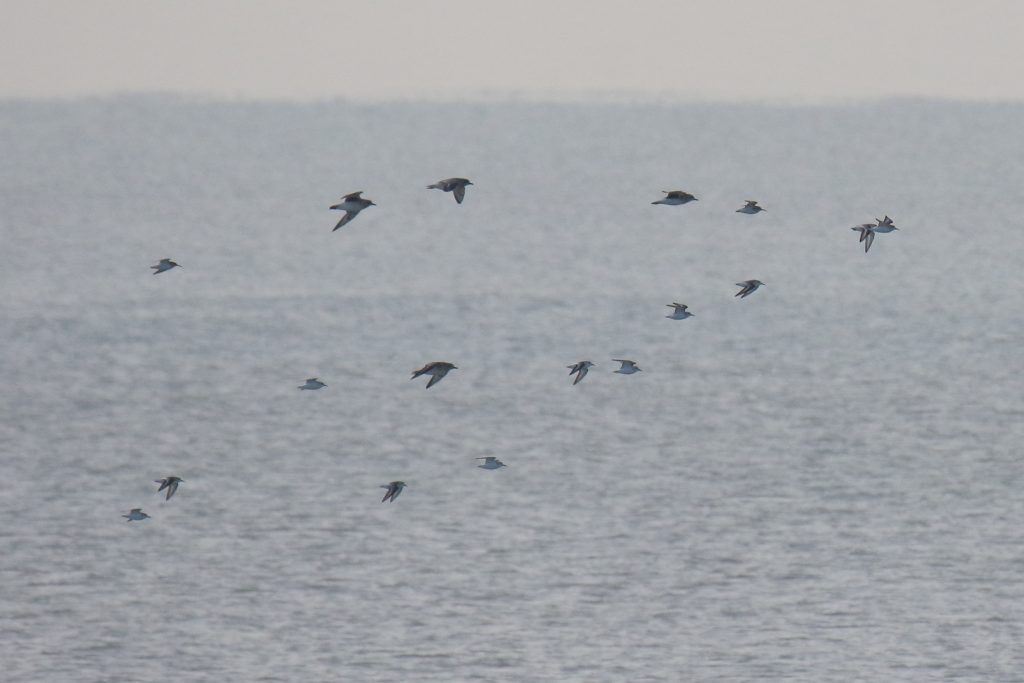 There were some great days of gull-watching though and particularly momentus was the morning of 8th Nov, when I arrived at West Hill to a trickle of gulls, mostly Great Black-backed Gull, moving east. After an hours or so of not much, suddenly three Caspian Gull flew east in quick succession, followed by a 1st-cycle Black-legged Kittiwake which landed on the boating lake! I messaged this out to David C who was on his way to Pett Level and he found another six different Casps (all 1st-cycle) over that way — amazing.