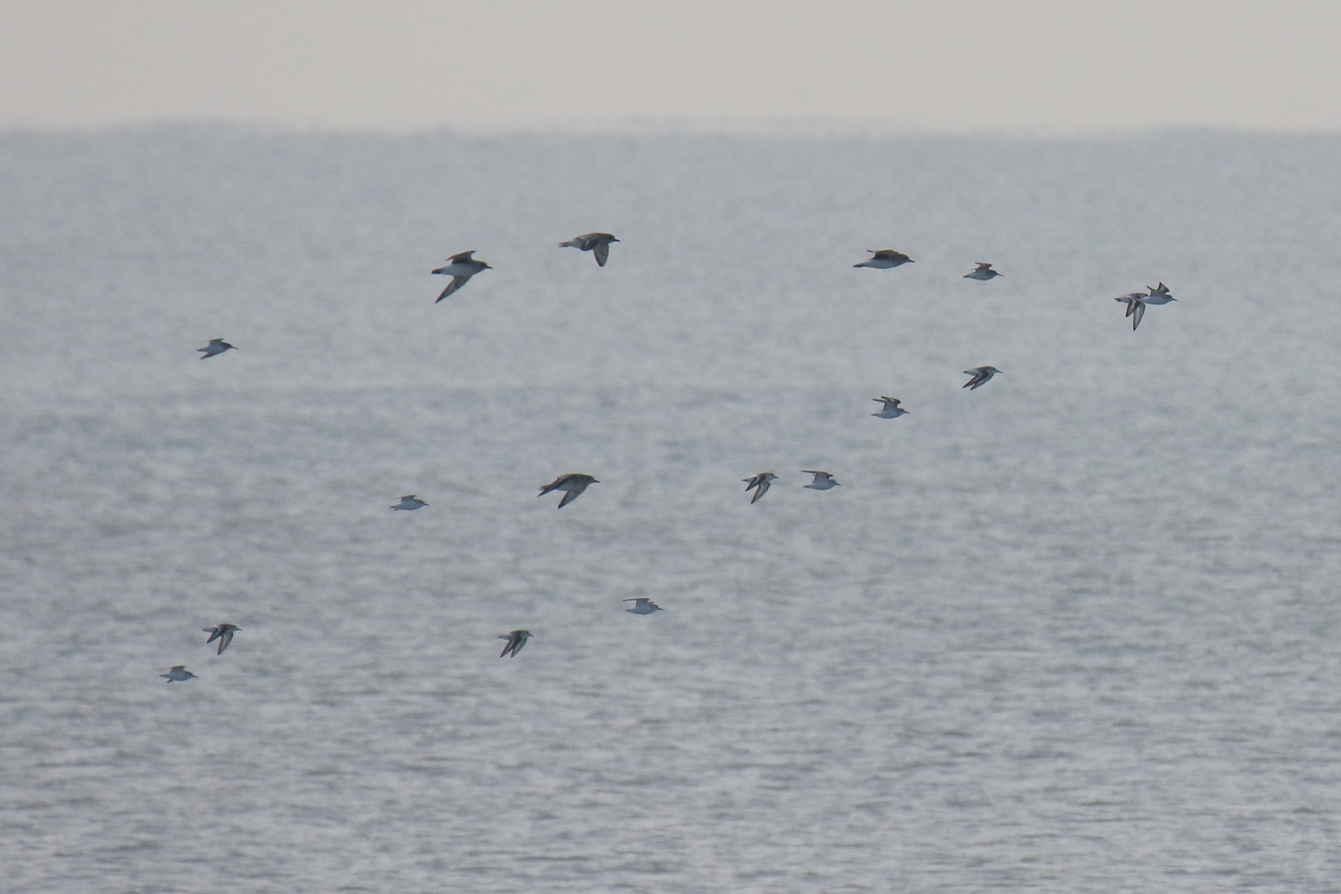 There were some great days of gull-watching though and particularly momentus was the morning of 8th Nov, when I arrived at West Hill to a trickle of gulls, mostly Great Black-backed Gull, moving east. After an hours or so of not much, suddenly three Caspian Gull flew east in quick succession, followed by a 1st-cycle Black-legged Kittiwake which landed on the boating lake! I messaged this out to David C who was on his way to Pett Level and he found another six different Casps (all 1st-cycle) over that way — amazing.