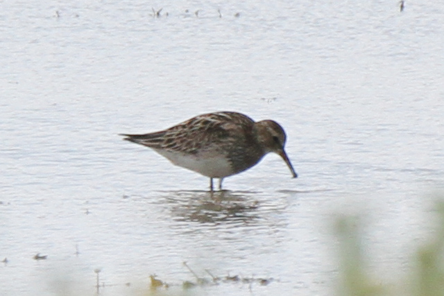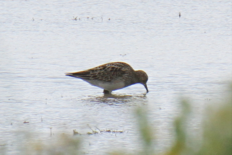 With a window of time to spend at Pannel Valley on the morning of Sunday 30th, waders were very much on my mind. Thanks to a timely intervention by the management there, wader-friendly water levels are being maintained at the main scrape. It was therefore no surprise to find a nice range of species present, including Ruff (first of the year for me), 2 Black-tailed Godwit, Dunlin and a Common Sandpiper. The obvious highlight though was finding a Pectoral Sandpiper, a new bird for me but something of a site speciality with 13 records by 2011 in the Pannel/Pett area (data from Birds of Sussex). The ID and aging of this bird presented a bit of learning experience for me so I thought I’d share some notes below.