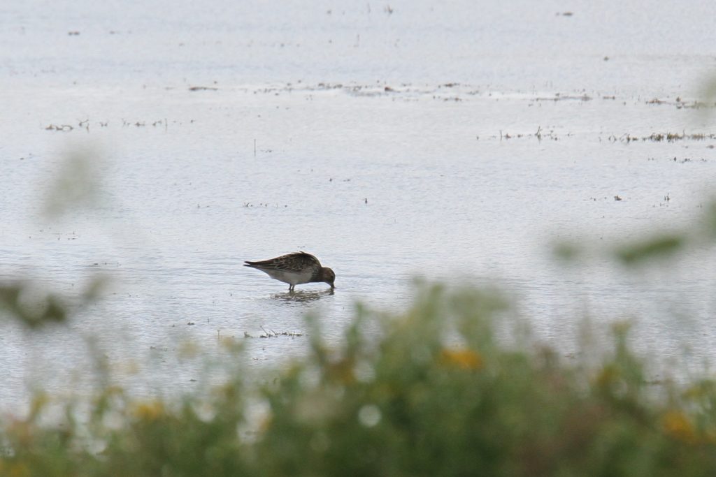 When the bird first popped out onto a visible expanse of the scrape, the overall impression and my first thought as to its identity was Dunlin. I know this species can be very variable and with nothing nearby to compare it to it didn’t stand out in terms of size. Furthermore getting a good look at plumage detail was challenging as the hide is positioned into the sun in the mornings. About as much as I could ascertain was that the breast streaking appeared quite sharply demarcated. At this point I did toy with fantasies of Pectoral but not having enough to convince myself it was anything other than an weird Dunlin, I decided to grab the best photos I could, put the thought on ice and revisit at home.