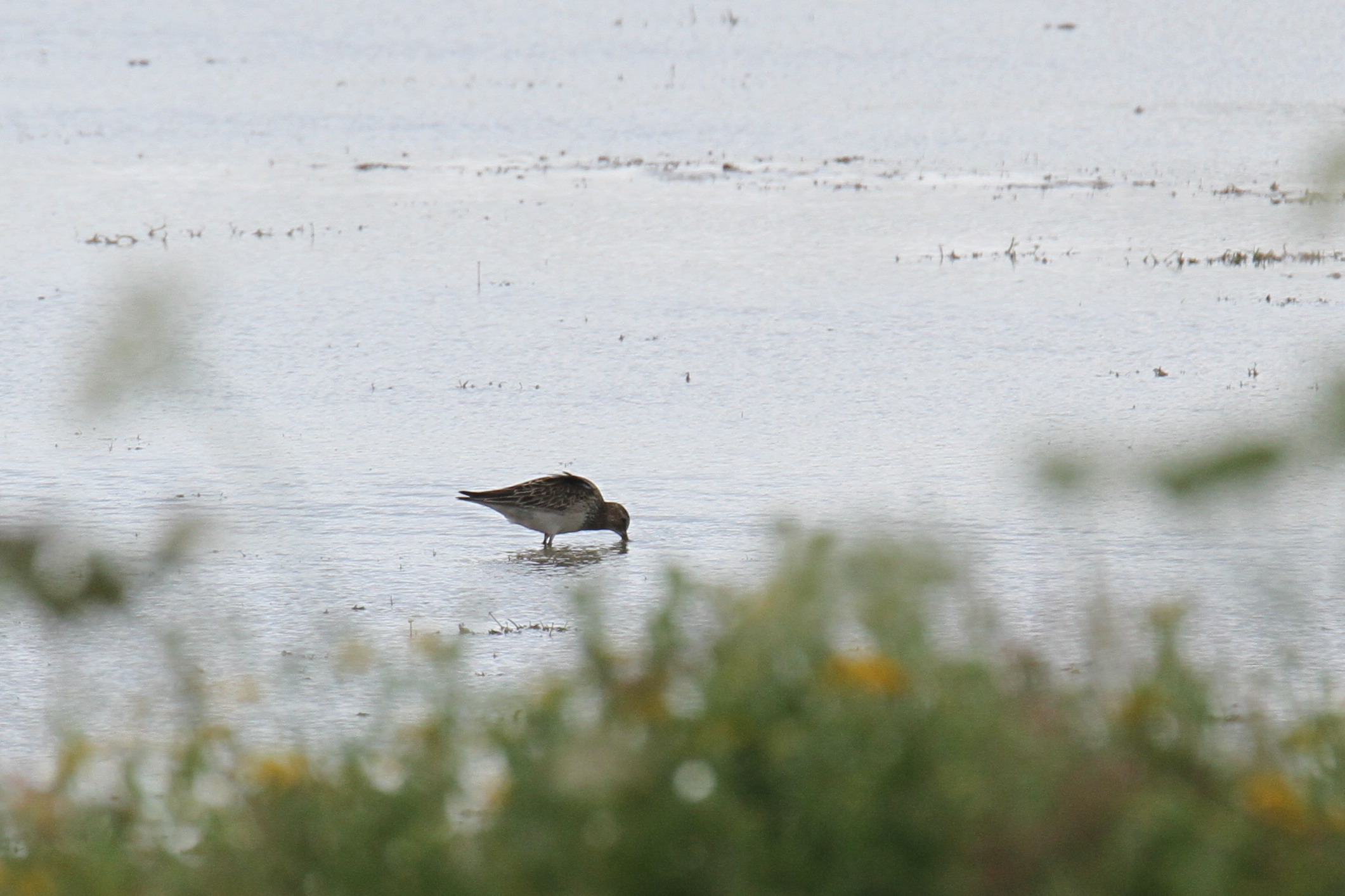 With a window of time to spend at Pannel Valley on the morning of Sunday 30th, waders were very much on my mind. Thanks to a timely intervention by the management there, wader-friendly water levels are being maintained at the main scrape. It was therefore no surprise to find a nice range of species present, including Ruff (first of the year for me), 2 Black-tailed Godwit, Dunlin and a Common Sandpiper. The obvious highlight though was finding a Pectoral Sandpiper, a new bird for me but something of a site speciality with 13 records by 2011 in the Pannel/Pett area (data from Birds of Sussex). The ID and aging of this bird presented a bit of learning experience for me so I thought I’d share some notes below.