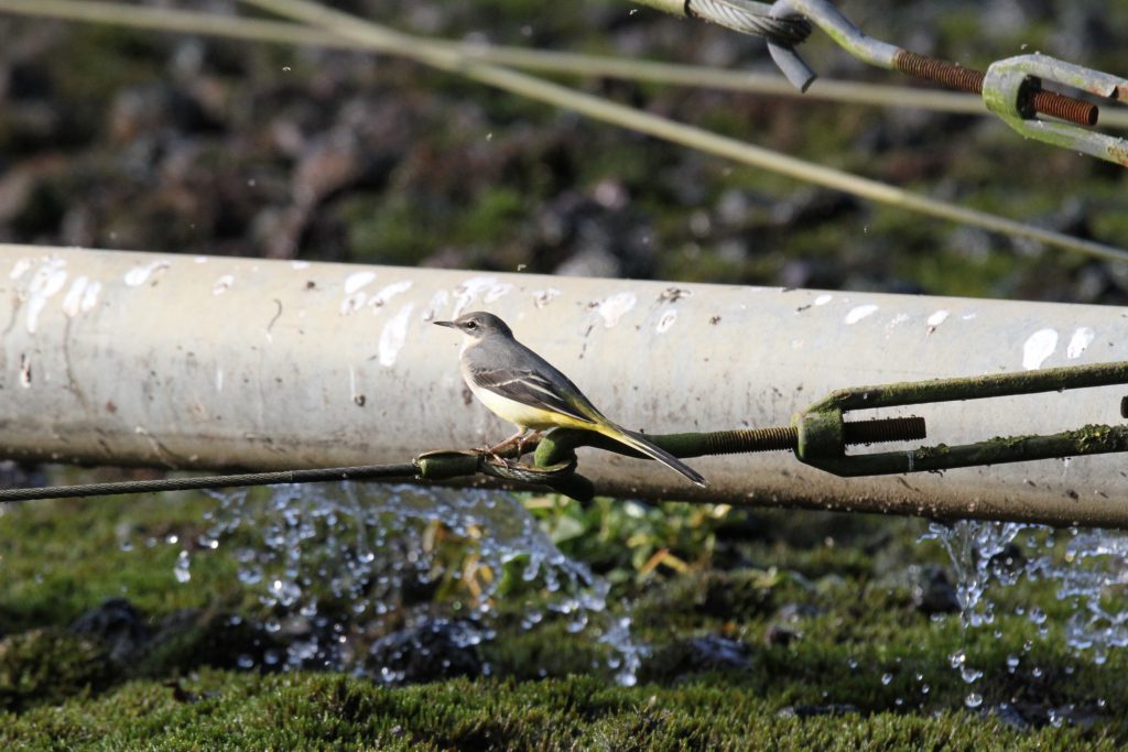 Grey Wagtail enjoying the filter beds at Battle WTW — note that the apparatus it is sitting on is rotating!