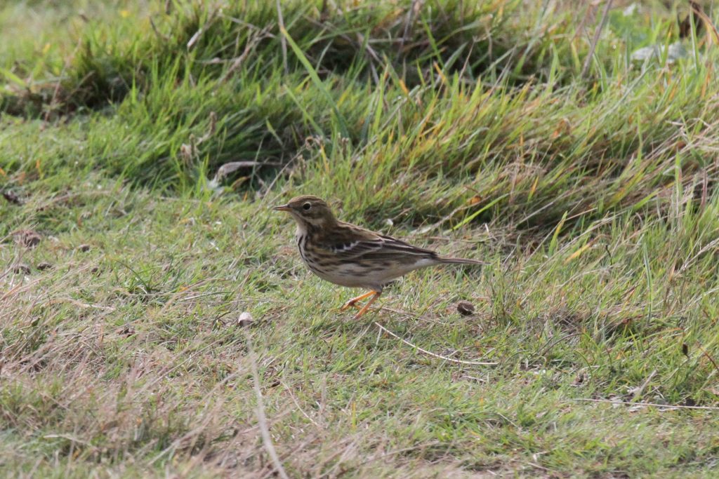 Meadow Pipit feeding in grass at Hastings Country Park.