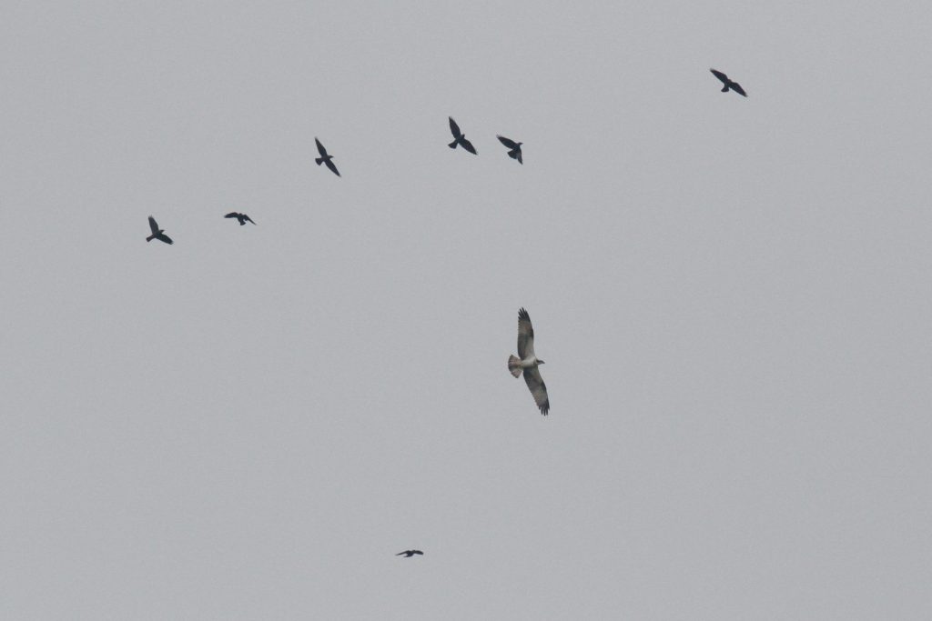 Osprey with Jackdaws in pursuit over Hastings Country Park.