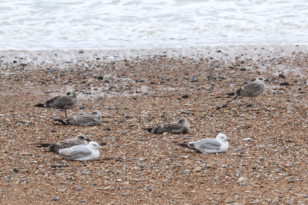 In the end I counted 10 juveniles which I could confidently identify as YLG based on their conforming entirely or almost entirely to the established characteristics for identification at this time of year: