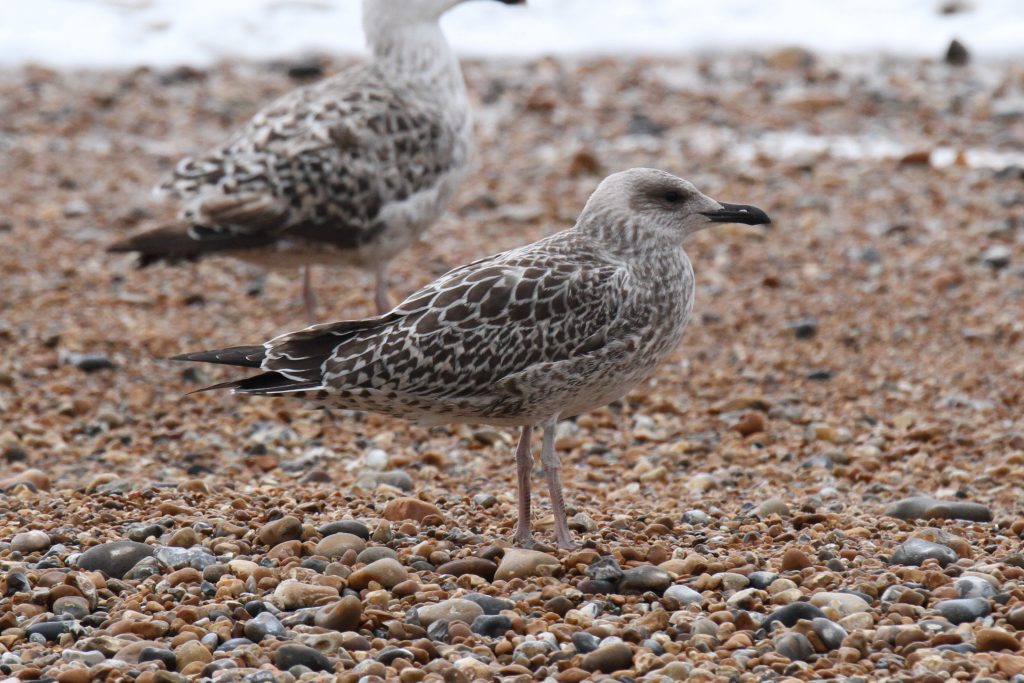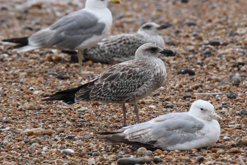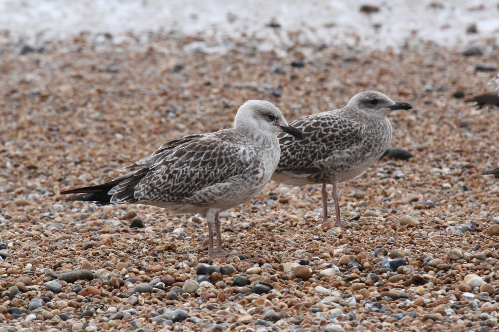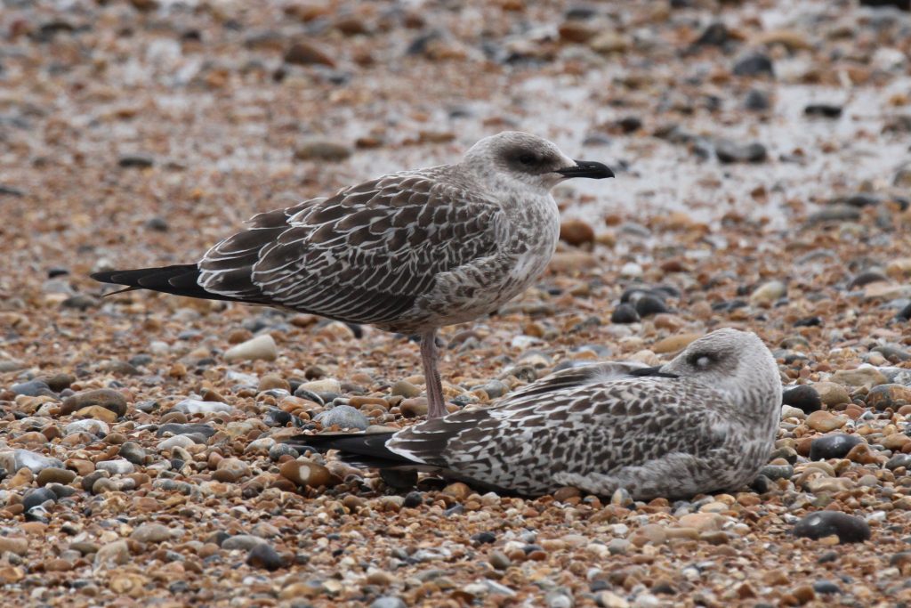 Despite the differences at the structural extremes, YLG and LBBG are known to show similarities in their first year. Moult progression is one reliable way to separate them, but this is not as relevant at this point in the year as many birds are still in full juvenile plumage. Descriptions of the two unidentified birds follow and then some closing thoughts on their potential identities.
