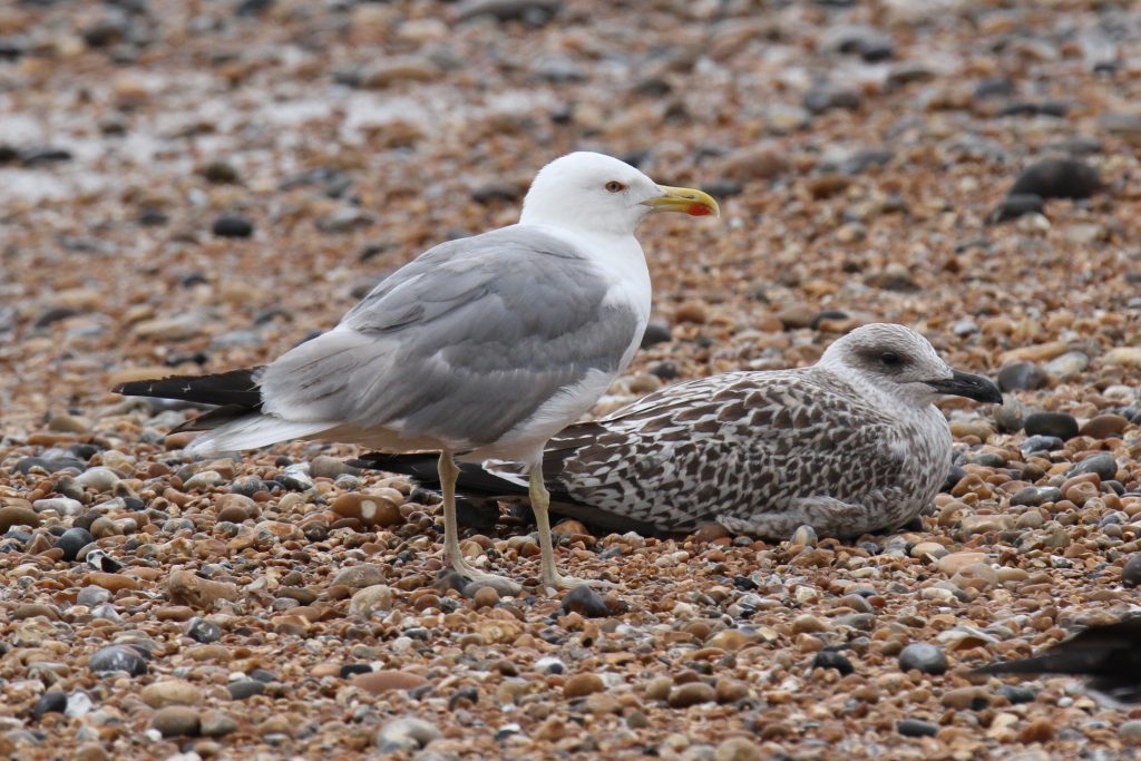In July we see the beginning of the UK’s annual influx of juvenile Yellow-legged Gull (YLG), as birds dispersing from breeding grounds in southern Europe arrive on our shores. I was curious to see how this would play out in Hastings given their annual presence in the Eastbourne area to the west. On the morning of the 11th I hopefully headed down to the seafront and was very happy to find a big arrival of YLG — 12 in total, mostly juveniles but a couple of other age classes too. These were seen in all the spots there are typically large gatherings of gulls on the seafront, namely Rock-a-Nore car park, The Stade beach and the boating lake.