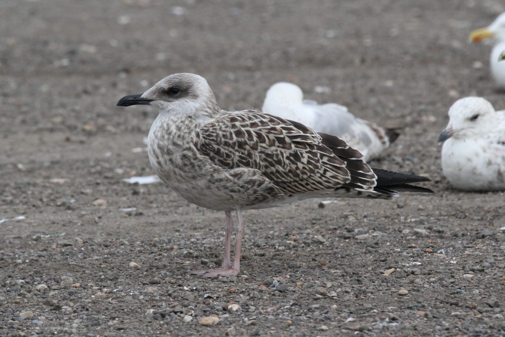 These southern LBBG populations are not well studied and I couldn’t find much information on their post-breeding dispersal patterns. The well known long-distance movement pattern for graellsii LBBG is southbound migration later in the autumn. But could some first-year birds disperse north in mid-summer, perhaps alongside YLGs? I’m not totally convinced by this, mainly because research has shown (albeit 30 years ago) that where both species breed alongside each other in colonies along the French portion of the Bay of Biscay, they show little overlap in laying dates and the earliest LBBG lay about a month later than the earliest YLG.
