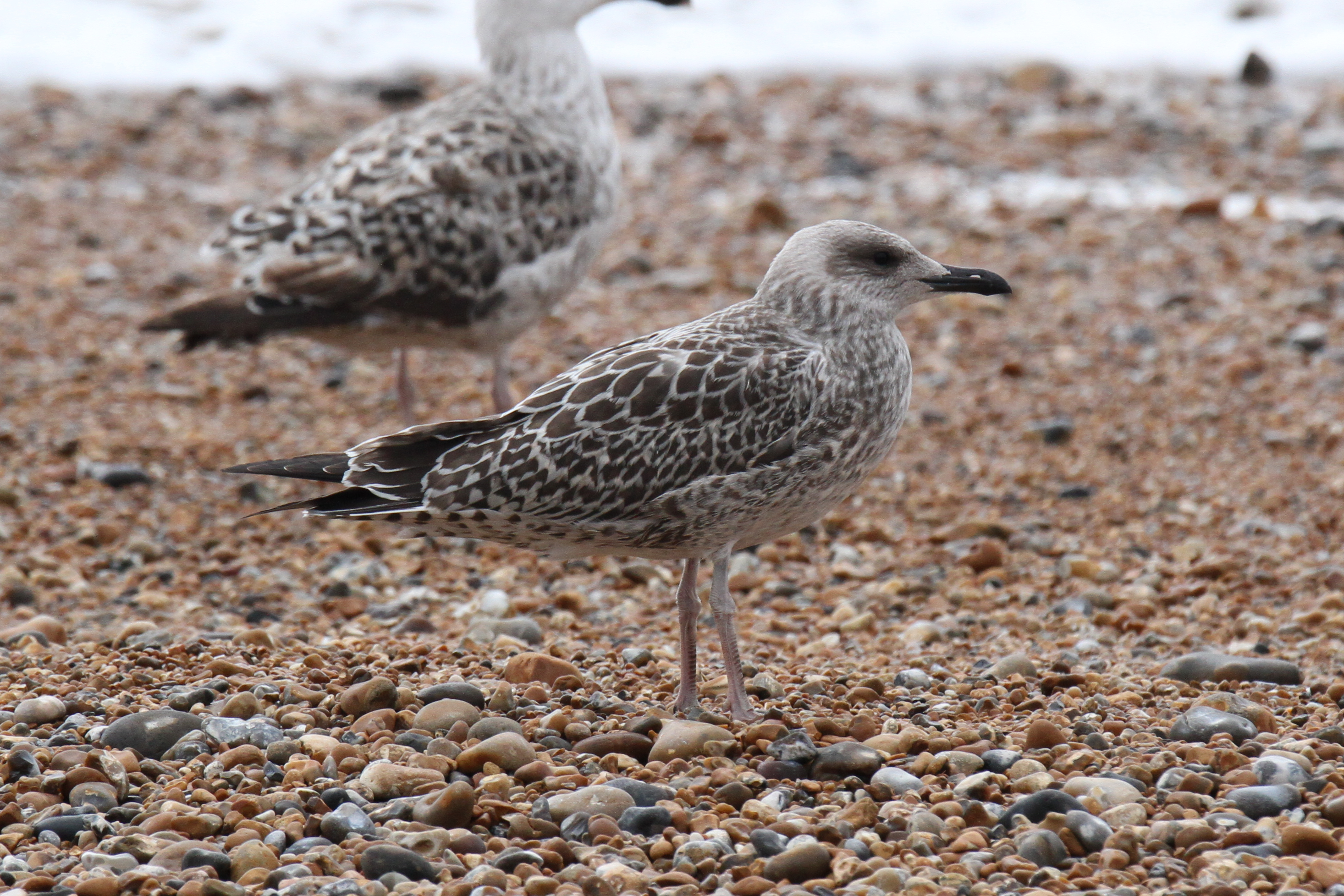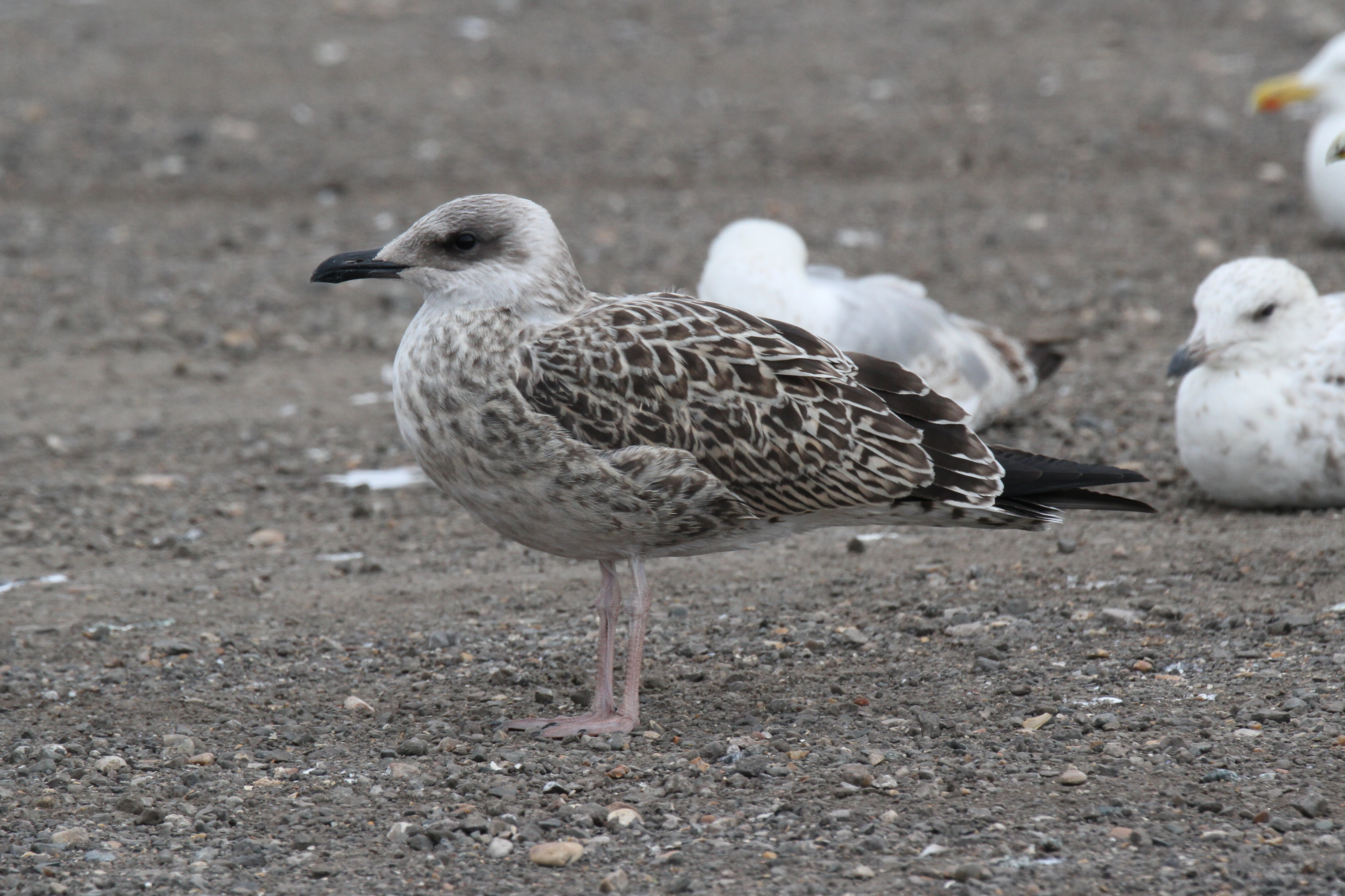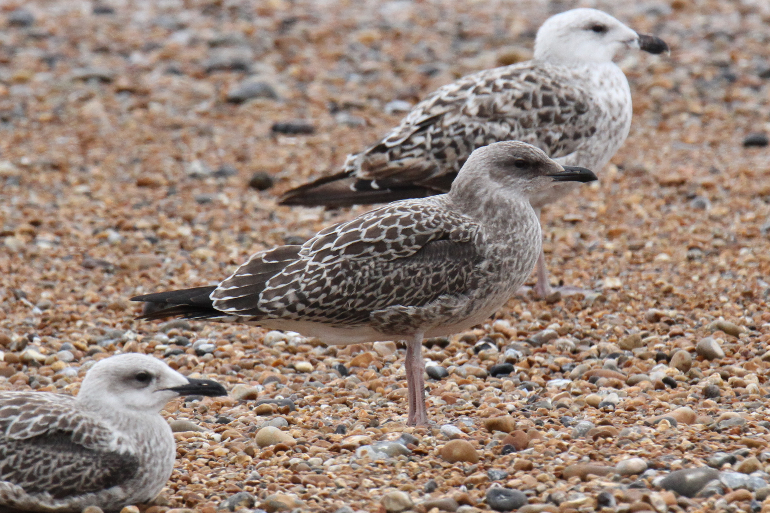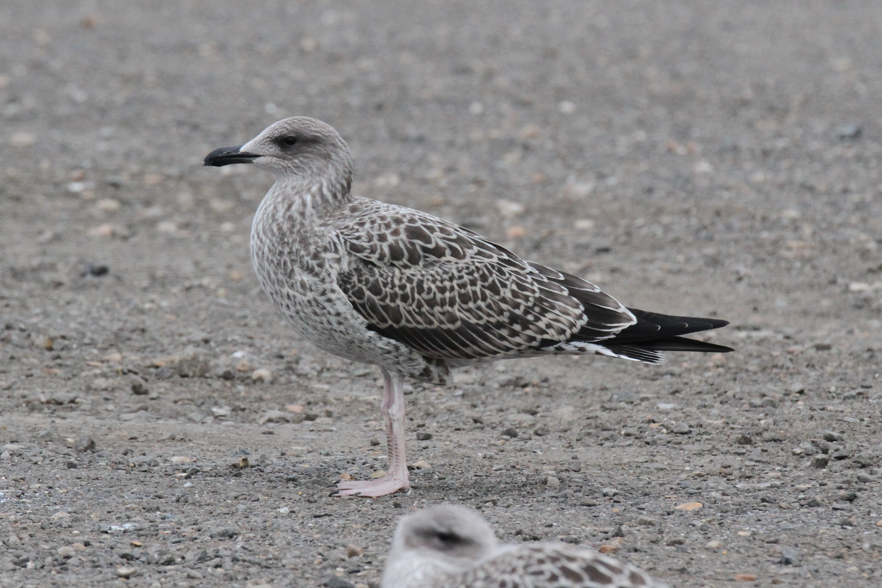 Despite the differences at the structural extremes, YLG and LBBG are known to show similarities in their first year. Moult progression is one reliable way to separate them, but this is not as relevant at this point in the year as many birds are still in full juvenile plumage. Descriptions of the two unidentified birds follow and then some closing thoughts on their potential identities.