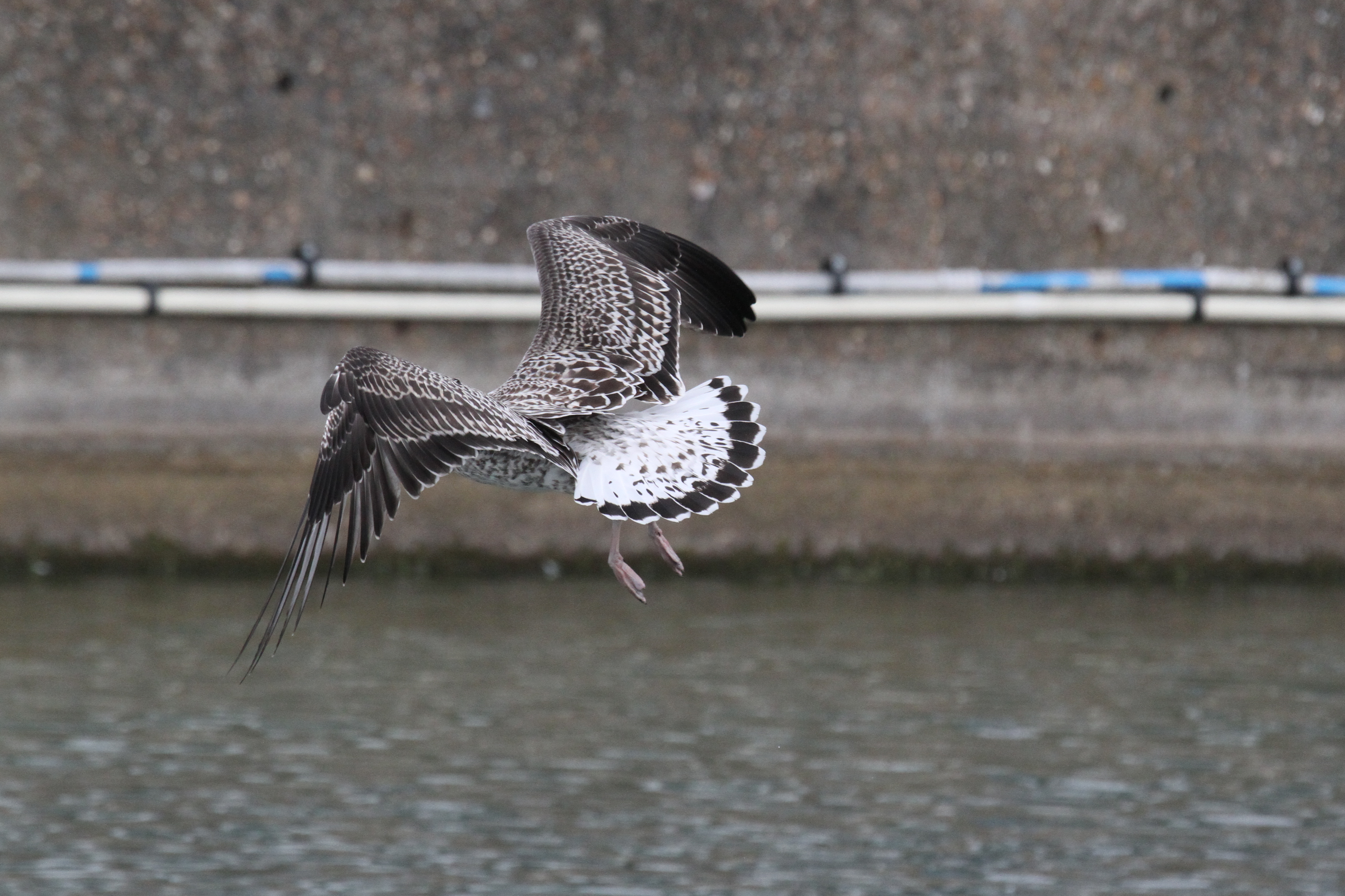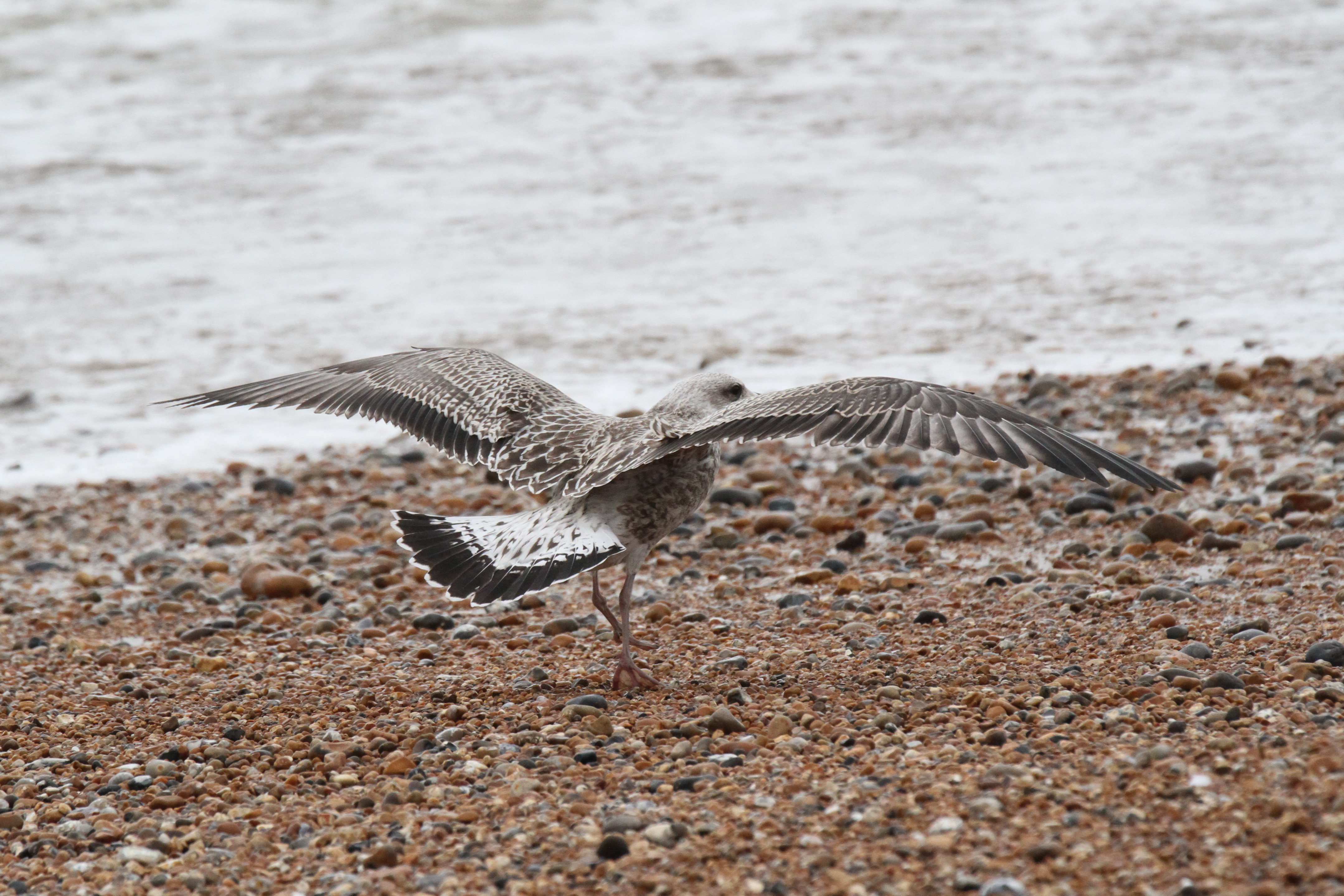 Photos of all 10 individuals follow with a few notes where I thought they were interesting. I’m rarely pleased to see a dog plough into a gathering of gulls but in this instance it was quite useful as it allowed me to see and photograph almost every bird in flight.
